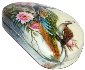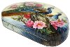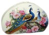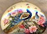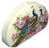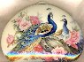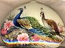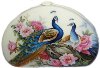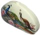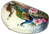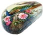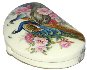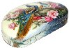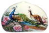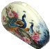 The box is dual-sided. On both sides of the box the artist has drawn peacocks. The birds are painted within the pion flowers and against the creamy background.