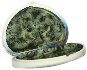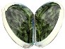 The box's interior imitates the color of green marble (dark green veins and blurry spots are scattered against the olive background). On the box's interior bottom the artist has written his name.