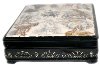 Description: This interesting box painted by a talented Fedoskino artist Oleg Nechaev, is based on poet's Pushkin's fairy-tale "Ruslan and Ludmila". The lid of this box is covered with complicated composition that show different scenes from the tale. Here we can find the scene showing the battle of Ruslan with the Giant Head. Next we see the cowardly and evil Farlaf. He has just killed Ruslan, and only the old Finn wizard can help Ruslan magically bringing him back to life using special "life and death" waters. Then follows the scene showing the wicked sorcerer Chernomor. And at last we see the moment of the tale when Ruslan enters Ludmila's room and tries to wake her with a magical ring given to him by the old Finn. After a few anxious moments, Ludmila finally opens her eyes.