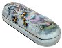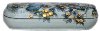 Description: This charming box has been painted by well-known Fedoskino artist Tamara Volodina. Painted in various shades of blue and gray oils, it shows an elf-boy and an elf-girl who are gathering apples from an apple tree.