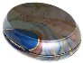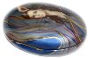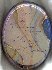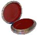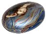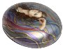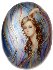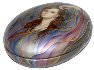 The portrait is painted against the shining silver and light blue background. The box's sides are decorated with blue oil paint.