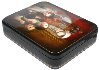 The scene is framed with a gold line; the box's sides are decorated with two parallel gold lines.