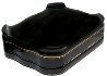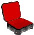 The box is constructed from paper-mache. Black lacquer covers the exterior and red lacquer covers the interior of the box. A hinge is fastened to the top of the scene. The box rests on the four legs. The work is signed with the artist's name.