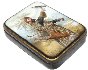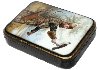 Description: This brilliant example of Fedoskino realism has been created by Boris Shavyrin. The box shows the full-length portrait of a falconer admiring his bird. In old Russia falconers had to supply game to the tsar's court and got some benefits therefore. The background is filled with Russian landscape.