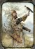 Bright oils are used to paint the costume of the falconer while the background is painted in light grey tones. Falconer's costume is richly decorated with gold paint. Several pieces of mother-of -pearl are shines through the costume of the falconer. The artist has used green mother-of-pearl on the sleeves of the falconer, amazing contrast!