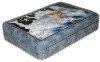 The entire surface of the box (except its bottom) is covered with intricate floral painting in creamy blue and green pallette.