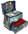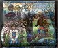 Combining blue and green tones of oils with a sparkle of mother-of-pearl inlay artist has managed to express a magical atmosphere of the tale. This atmosphere is strengthened by gold and silver powders as well as by applying three-dimensional elements as the trees and their branches. A grandiose work has been done to create such an impressive box!!!