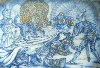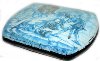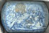 The scene is masterfully painted in mono-chromic pallete of blue and white colors. Brilliant gold paint is applied with a very thin brush to enhance various details.
