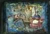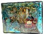 The box demonstrates Maslov's impeccable style. Blue and brown tones of oils predominate here. The most of the elements of the composition as the characters' costumes and the plants are detailed with bright gold paint. Gold and silver powders are mixed with the oils to enrich to color palette.
