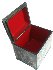 The casket is made out of paper-mache. The lid is hinged from the top of the scene, and the box rests on four legs. The interior of the box is covered with red lacquer.