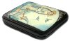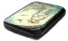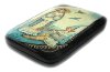 The box is constructed from paper-mache. The lid is hinged from the left of the composition, and the box rests flat.