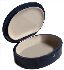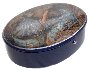 The box is constructed out of paper-mache. Blue lacquer covers the exterior and gray cream color covers the interior of the box.