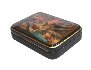 The box is constructed from paper-mache. A hinge is fastened to the left of the scene, and the box rests on a flat bottom. The work is signed with the artist's name, Fedoskino and the year of 2015.