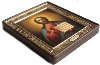 The icon is constructed from wood, rests on a flat bottom. Signed with the artist's name on a metal plate, which is srewed to an icon.