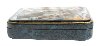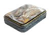 Rich gold line frames the composition.The box's sides imitates the color of blue marble; the bottom is black, while the interior of the box is traditionally red.