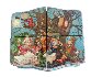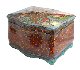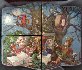The work is called "Magicians". The whole surface of the lid, which is divided in four parts, is covered with painting. Here the artist has painted several magicians, sit under/on/in a large oak tree. A piece of mother-of-pearl shines throught the moon on the left.Wise cat is sit with a book of fairy-tales on the right part. Sides of the box are painted with gold lines. The box has a drawer on the fron side.