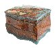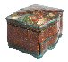 The box's bottom part is imitating green marble. Dark red lacquer covers the box's interior. The artist has written his name, the title and the year of 2017 at the bottom of the lid. The box is made out of paper-mache. The lid is hinged, and the box rests on a four feet.