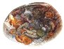Description: This interesting work has been created by well-known artist, Mochalova Marie, from the village of Fedoskino. This installation imitates the shape of a basket filled with mushrooms. Marie is a daughter of Nikolay Zotov, Fedoskino Master, who is know for his unique shaped boxes.