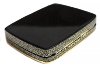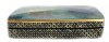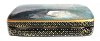 The painting is framed with a thin golden line. The box's sides are RICHLY decorated with a silver scan pattern (composed of scrolls hand punched from silver metal sheets, and then glued to the box manually).