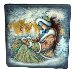 The composition is mostly painted in white, yellow and blue tones that fit excellently for reproduction of a winter landscape. The costume of a girl is richly decorated with gold paint.