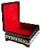 The box's sides are decorated with silver and gold patterns.