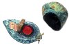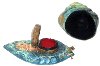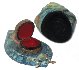 This installation is constructed from paper-mache. Black lacquer is used to paint the exterior of the piece while bright red lacquer completes the interior of the box on a base.