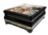 Golden beads, painted in various sizes, frame around the lid's artistry. The sides of the box are decorated with beautiful and complex floral ornamentation painted in gold and aluminum.