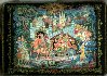 Description: Well-known and established Kholui artist Evgeniy Dobrin has painted this complex composition. The coloration captures the eye while the scenery holds each character in a uniquely sentimental way. The artist uses gold paint to accent the composition and make a viewer want to be attracted to it. Every detail is delicately manipulated for a great overall effect!