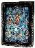 The scene is painted in bright red, blue, green and orange tones. The artist's use of golden and aluminum contours is splendid.