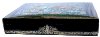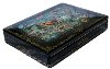 The box depicts an assembly of characters from the sentimental tale of "Cinderella." The Russian version of the tale is entitled as "Zolushka." The story itself is the ultimate representation of the poor hard working soul, going through personal heart ache and then eventually living happily ever after. Cinderella's fairy Godmother transforms her, with the help of some adorable animal friends, into a gorgeous Princess (this scene is painted in the center of the composition). The handsome Prince falls in love with her as she is the most beautiful girl at the ball arranged in the palace. At midnight Cinderella disappears, and the Prince can find her only with the help of a crystal shoe lost by the girl (this scene is depicted in the upper part of the composition).