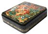 Gold and silver paints are also used to decorate the box's sides with intricate floral pattern.