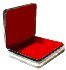 The box is constructed from paper-mache. Black lacquer is used to paint the exterior of the piece while red lacquer completes the interior of the work. The lid is hinged from the left of the composition, and the box rests on the four small round legs.