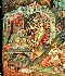 The details in this composition expose Galda as a true master of his craft. Detailing enhances architecture, facial expression and landscape. Purposeful precision. The colors that he takes from his palette are darker shades of various pastels, giving the piece a mystical tone. Gold paint is used to outline and highlight areas of emphasis in the scene. This is done with subtlety and an eye for artistic integrity. The eyes of the viewer are forced to survey the entire piece, a purpose intended by the artist, difficult to create and even more frustrating to duplicate. Galda's artwork captures the imagination and refuses to let go.