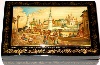 Description: This gorgeous box was painted by Mikhail Strunin from the village of Mstera. It depicts a view of the Moscow Kremlin from the direction of the Stone Bridge. Probably, working on this box the artist used some old paintings drawn in the 18th and 19th centuries.