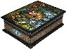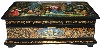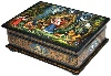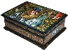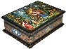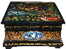 Description: This colorful box has been painted by the Mstera artist Antonina Medvedeva. Her original works are much in demand by collectors. Here the artist has chosen to depict a scene from the Russian fairy-tale “Geese and Swans”. This tale is about a little boy, Ivanushka, who was kidnapped by the wicked birds, Geese and Swans, by the order of Baba-Yaga. The boy's sister, Alyonushka, started searching for her brother, and found him in Baba-Yaga's house. Later the children could successfully escape from that place, but Geese and Swans began pursuing them. Only with the help of the Apple-Tree, the River and the Stove, the children were saved.