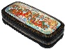 The scene is painted in bright tempera paints, and detailed with gold paints. The edges of the lid and the box's sides are decorated with beautiful gold and aluminum floral patterns.