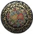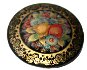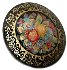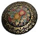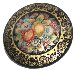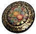 Description: This beautiful brooch was painted by a talented Mstera artist, Pavel Sorokin. It shows a bouquet of flowers painted with a thin brush in gold against the black background. The edges of the brooch are decorated with rich gold pattern.