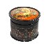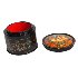 The box is made out of paper-mache. Black lacquer covers the exterior and red lacquer covers the interior of the box. The lid is not hinged , and the box rests flat. The work is signed with the artist's name, Mstera and the title.