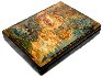 Description: This impressive box was painted by young, but very talented Mstera artist, Nikolay Molodkin. The work is based on Alexander Pushkin's "Tale of Golden Cockerel", and shows large and scrupulously painted composition.