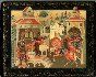 Description: This box was painted by Kalinichenko Dmitriy shows a scene from the well-known Alexander Pushkin's "tale Tale of the Golden Rooster" .