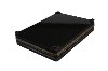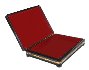 The sides of a box are decorated with a gold ornamentation. The box's exterior is black, while the box's interior is red.