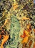 The scene is painted in cool tones to reproduce a cold winter day. The details are enhanced by gold and aluminum paints. To create luminescence around the Snow Queen's figure the artist has used a gold metal leaf.