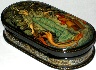 Description: This Palekh box painted by Peskova Irina features the most recognizable moment from Christian Andersen's fairy tale "The Snow Queen". Kay was sledging down the ice-hill together with other children. Suddenly he saw the Snow Queen's luxuriant huge sledge pulled by magnificent white steeds. The Snow Queen whose festive attire was shining like diamonds offered the boy to take a ride inside her speedy sledge, the boy agreed, and nobody saw him since then.