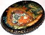 Description: This traditional Palekh box is a creation of N. Philippova and Natalie Brovkina. It shows several scenes from the popular fairy-tale "Little Red Riding Hood", written by the French writer Charles Perault. Little Red Riding Hood is a little girl who lives in the village near the forest. She wears always wears the red hood and that is the reason of her strange nickname. Once her grandmother gets sick, and Little Red Riding Hood is sent out to bring her cookies. On the way to the grandmother's house she meets the hungry Wolf. The Wolf wants to eat the girl but is afraid to do so in public (there are woodcutters nearby). He approaches the girl, and she naively tells him where she is going. He suggests the girl pick some flowers, which she does. In the meantime, he goes to the grandmother's house and gains entry by pretending to be the girl. He eats the grandmother and waits for the girl, disguised as the grandmother. When the girl arrives, he eats her too. A woodcutter, however, comes to the rescue and cuts the wolf open. Little Red Riding Hood and her grandmother emerge unharmed.