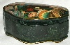 The artist has used a rich palette of bright tempera paints to paint this box. Gold paint is applied with a very fine brush to add various details. Gold is also used to draw a line that frames the composition. The box's exterior is covered with grey-green colored imitation marble while its interior is traditionally red. The lid is hinged at the top, and the box rests on intricate legs. The artist's name, the title, the year of 2007, and the village of Palekh can be found on the lid's interior painted in gold paints.