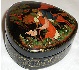 Description: This splendid Palekh box has been painted by Olga Kolygina. The work is called "Parting", and shows the parting of a maiden with a brave warrior who is going to defend his motherland from an enemy.