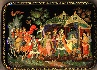 Description: This traditional Palekh box has been painted by the famous Palekh artist, Vladimir Vlezko. Vladimir was born in 1944. During 1959-1964 he studied in the Palekh Art School. Themes of his works are folklore, literature and genre scenes. His works are kept in the State Museum of Palekh Art and in the Ivanovo Regional Art Museum.