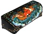 The beautiful winter landscape is painted in cold blue tones, while the troika and the human figures are painted in warm orange, red, green and white tones. Gold and aluminum paints are applied within the composition to add brightness and detail. The application of metallic paints is very subtle yet yields great results.
