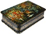 Description: Sadko is a wonderful old Russian fable based in ancient Russian Mythology. In the icon-style composition painted on this box, Sadko has descended into the undersea world of Tsar Morskoi, as a live sacrifice to save his stranded ship. Sadko falls to the bottom of the sea and finds himself in the palace of Tsar Morskoi. The King and Queen of the Sea have heard about Sadko's musical talents and ask him to play and to sing for them. They are overjoyed by his music, and decide to keep Sadko in their Sea Tsardom, to be their daughter's bride. But Sadko tells their daughter, Volkhova, that he can't marry her, as he is in love with his wife, Lubava. Volkhova understands that Sadko's devotion to his wife is too strong to be swayed, so she helps him to sneak away, back to Novgorod. Still amorous of Sadko, Volkhova tenderly kisses Sadko 'goodbye' and turns into the river Volkhova which flows from Lake Ilmen to the sea.