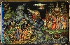 This box is a magnificent icon-style piece, with a presence which would complement any collection. The artist masterfully combines scenes from Novgorod, the high seas, and from Morskoi's underwater kingdom to tell the story.